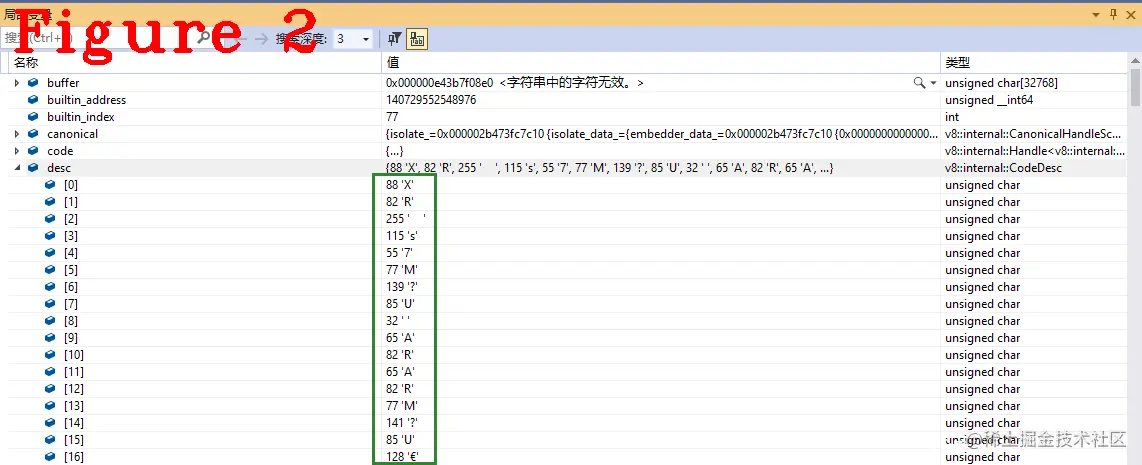 上面两部分代码实现了第77号Builtin功能,名字是HandleApiCall,图2以char类型展示了生成的源代码。