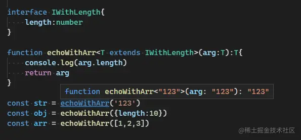 function echoWithArr<T extends IWithLength>(arg:T):T{
