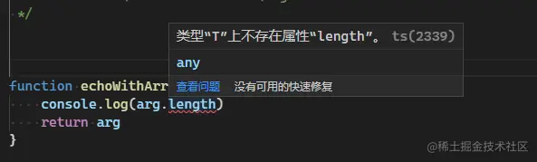 这是因为在我们使用泛型函数内部变量的时候由于事先不知道他是哪种类型,所以我们不能随意的操纵他的属性或者方法.相比于操作any所有类型,我们想要限制函数去处理任意带有