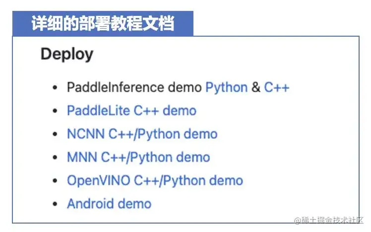 并且支持快速导出为ONNX格式,使开发者可以通过ONNX生态能力进行更广泛的算法部署应用,可以通过自己熟悉的移动端引擎进行PP-PicoDet的部署和推理。