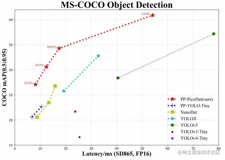 图6 PP-PicoDet在COCO上和其他轻量级检测器性能试验对比