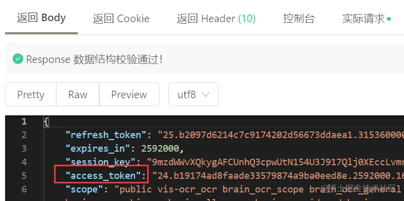 step4:查看返回参数可看到返回了我们需要的acess_token 字段: