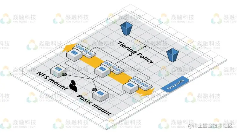 在保证用户访问性能的同时,焱融 SaaS 平台还充分利用了云上的对象存储能力,根据系统定义的策略,会主动将冷数据转移到 S3 对象存储内,但并不破坏用户统一命名空间的访问能力。