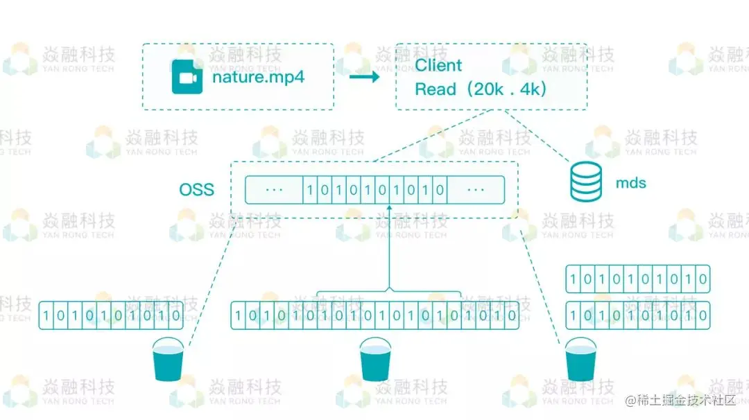 解决这个问题的思路即为局部读写,根据客户程序读写文件的信息,利用文件的 MDS 信息也对应去 S3 对象存储上读写对应的片段并返回给客户,同时为了充分利用网络带宽的能力,焱融 SaaS 平台对读取的数据范围会进行对齐操作。