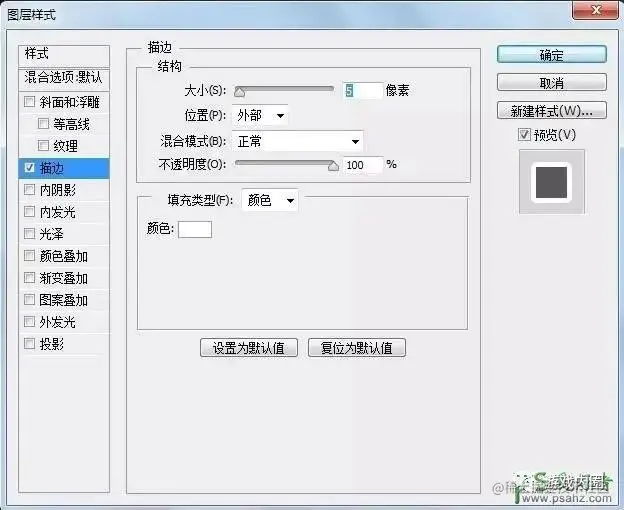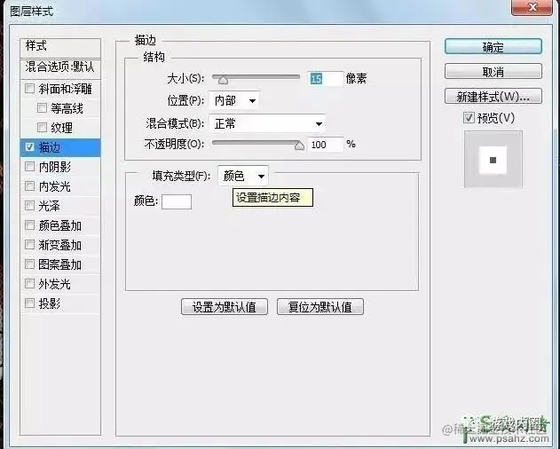 双击后进入图层样式设置:描边,白色,大小设置大一些。