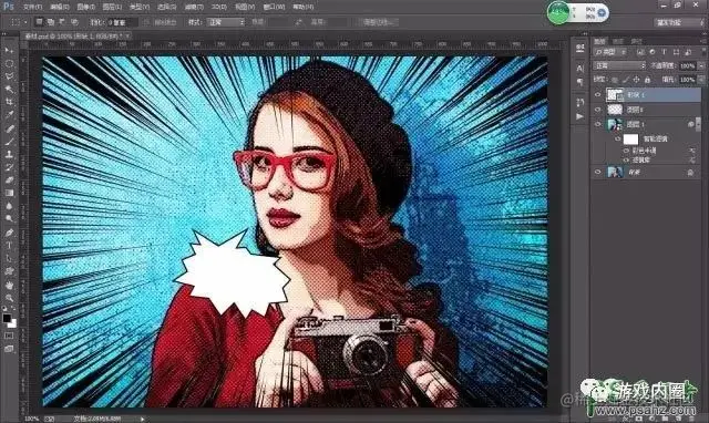 6、加点缀,设置对话框与文字。用自定义形状工具,找到对话框形状,根据自己爱好选择一个对话框,填充成白色,描边可以选择黑色,Ctrl+T调整一下好大小和它的位置。