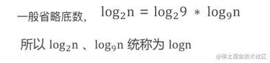 从上面代码可以看到,在while循环里面,每次都将 i 乘以 2,乘完之后,i 距离 n 就越来越近了。我们试着求解一下,假设循环x次之后,i 就大于 n 了,此时这个循环就退出了,也就是说 2 的 x 次方等于 n,那么 x = log_{2}n