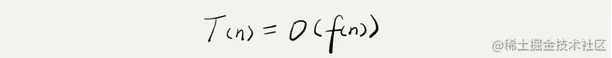尽管我们不知道unit_time的具体值,但是通过这几段代码执行时间的推导过程,我们可以得到一个非常重要的规律,那就是,所有代码的执行时间T(n)与每行代码的执行次数n成正比。 我们可以把这个规律总结成一个公式。