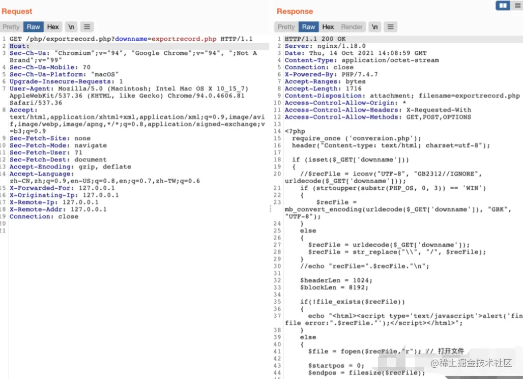 传入downname参数,没有对 ../ 符号过滤,就导致跳目录读取文件