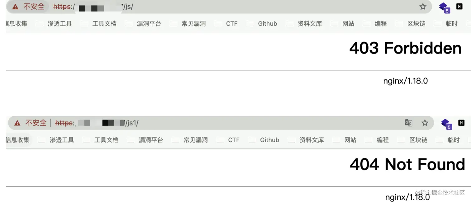 访问一下JS目录,这里有一个小技巧,当目录存在时会自动在后面加上 /, 例如浏览器访问 /js, 将会变成 /js/ 来访问