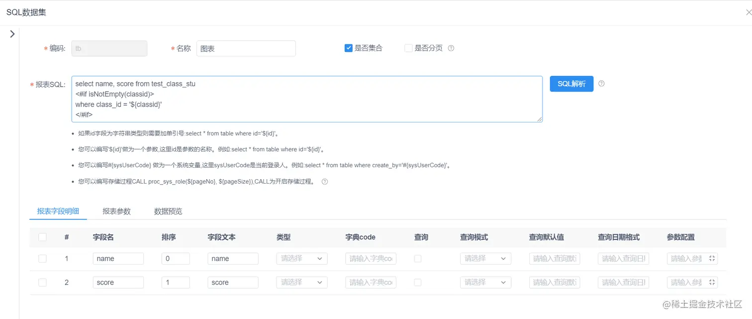 准备上述步骤一,两个报表所需要的数据集