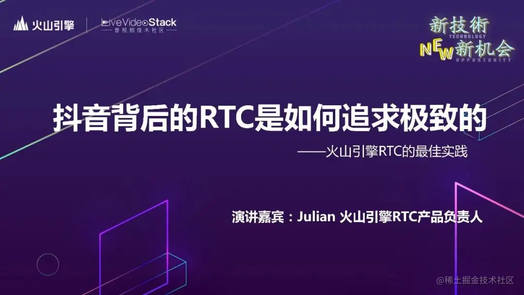 大家好,我是来自火山引擎 RTC 团队的 Julian,很高兴今天能跟大家学习交流。今天我带来的分享是抖音背后的 RTC 是如何追求极致的。