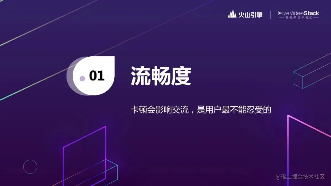 首先,讲一下流畅度。流畅度对应的指标是卡顿率。卡顿其实对于交流的影响是最大的,即使只卡掉一个字,你也会明显感觉到交流不畅。