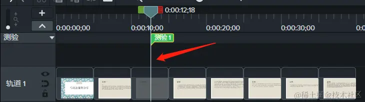 添加完毕后,我们看到如图3的时间轴上,选择的位置已经加入了一个“测验1”。