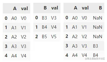 join() 用于两个及多个 DataFrame 间列方向(沿 x 轴)的拼接操作,默认左拼接。