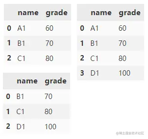 append() 可用于两个及多个 DataFrame 间行方向(沿 y 轴)的拼接操作,默认取并集。