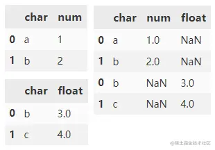 concat() 默认会对行方向进行拼接操作,连接方式 outer。