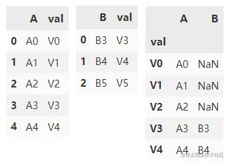 如果我们想使用 val 列进行连接,我们需要将 val 设置为 df1 和 df2 中的索引。