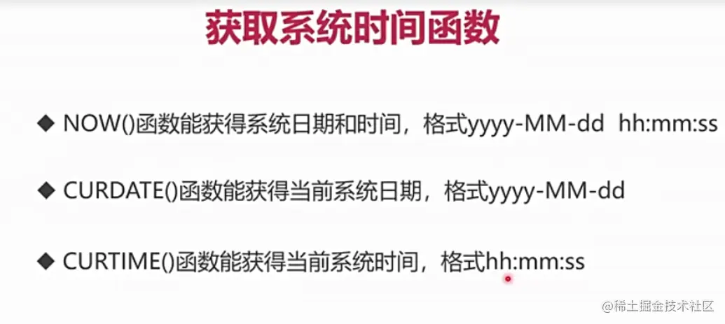 MySQL基本函数的使用 H0rr1c4n3 2021-11-23 143 阅读1分钟 函数分类:数字函数、字符函数、日期函数、条件函数 保留小数点后两位:先乘100再除以100 MySQL数据库内,两个日期不能直接加减,日期也不能与数字加减