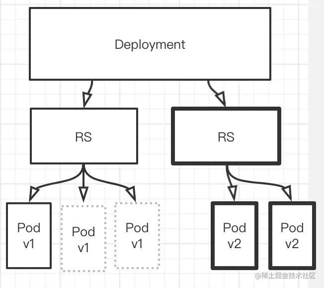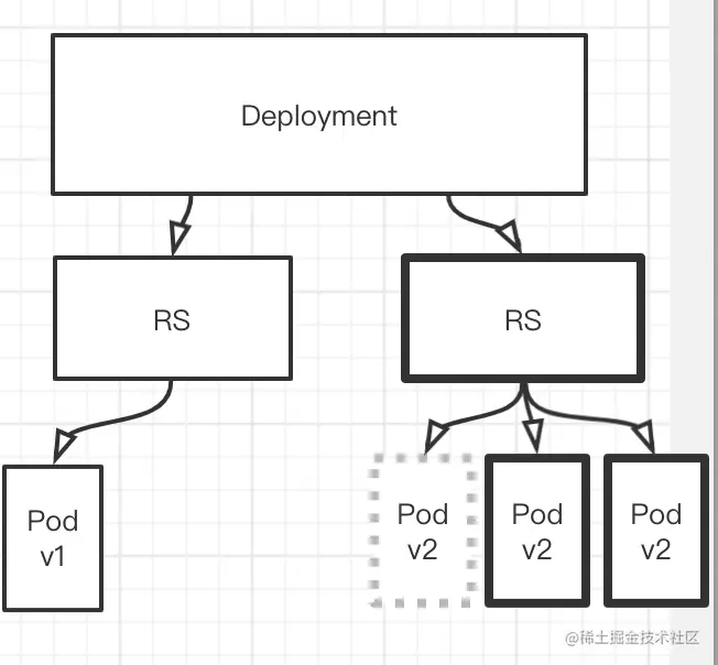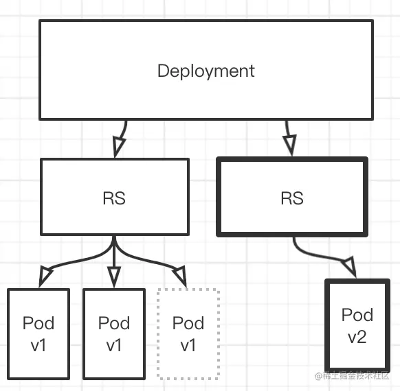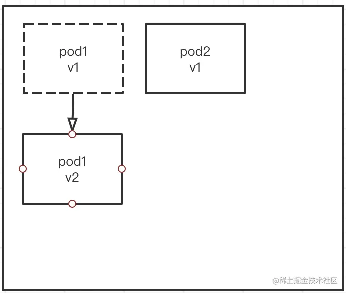 首先, 先生成一个新的pod.然删除一个旧的pod, 如下如所示. 先生成一个v2版本的pod, 然后删除一个v1版本的pod . 然后在创建一个新的v2版本, 再把老的v1版本删除.