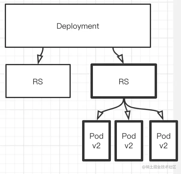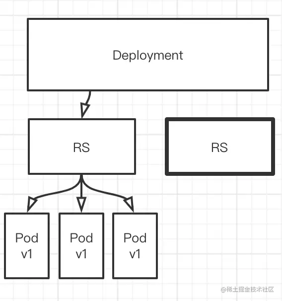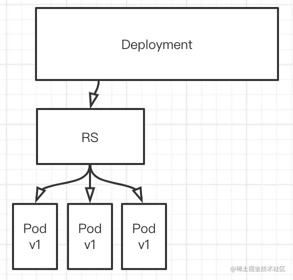 Deployment定义出来以后, 他会定义一个rs, 也就是说rs不是我们自己定义的, 是Deployment自动生成的. RS会创建多个pod. 如下图