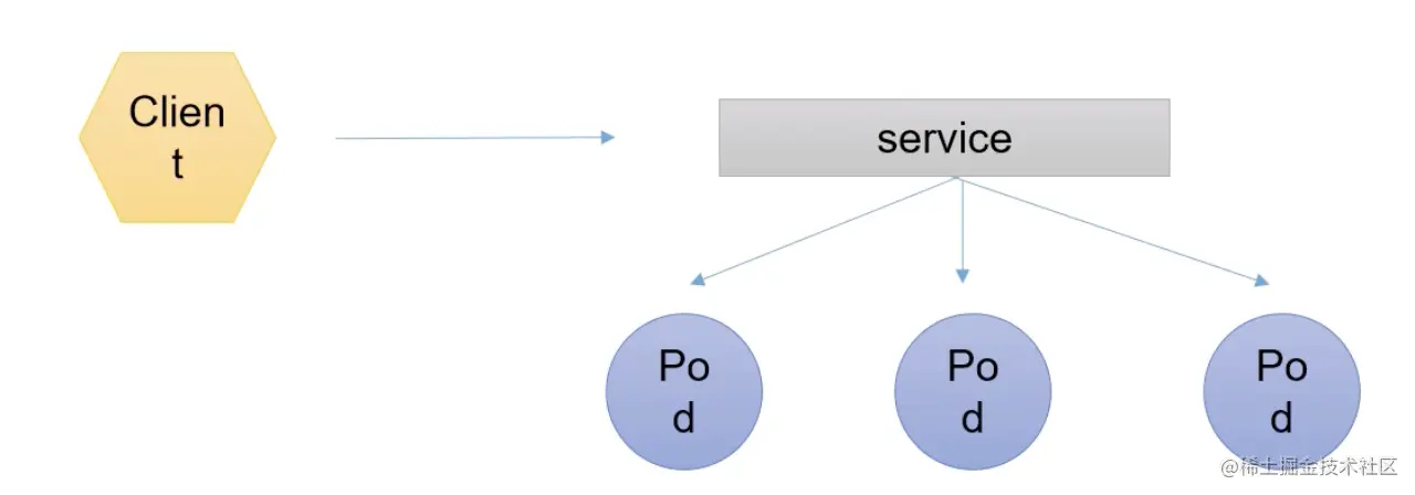 客户端想要访问一组pod, 如果这些pod是无相干的话,是不能通过Service代理的. pod需要具有相关性, 比如同一个rs / rc deployment创建的, 或者拥有同一组标签. 都可以被service收集到. 即: service去搜集Pod是通过标签去选择到的. 这一点很重要. 选择到以后, service会有自己的ip+port, 客户端就可以访问service的ip+端口. 客户端就可以访问service的ip + 端口. 间接访问pod. 并且这里有一个RR的算法存在.