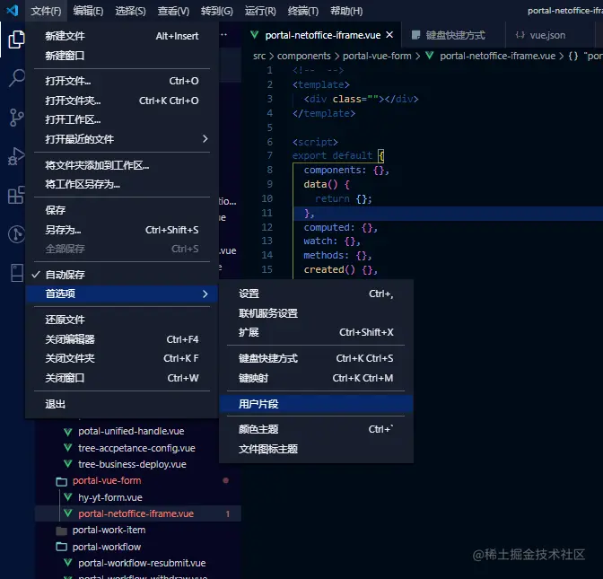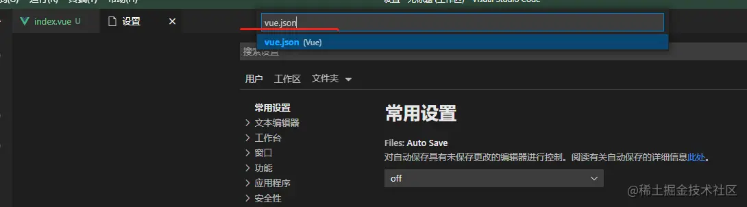 在这里选中你要设置文件类型相关的json,我们这里以vue为例,选中vue.json