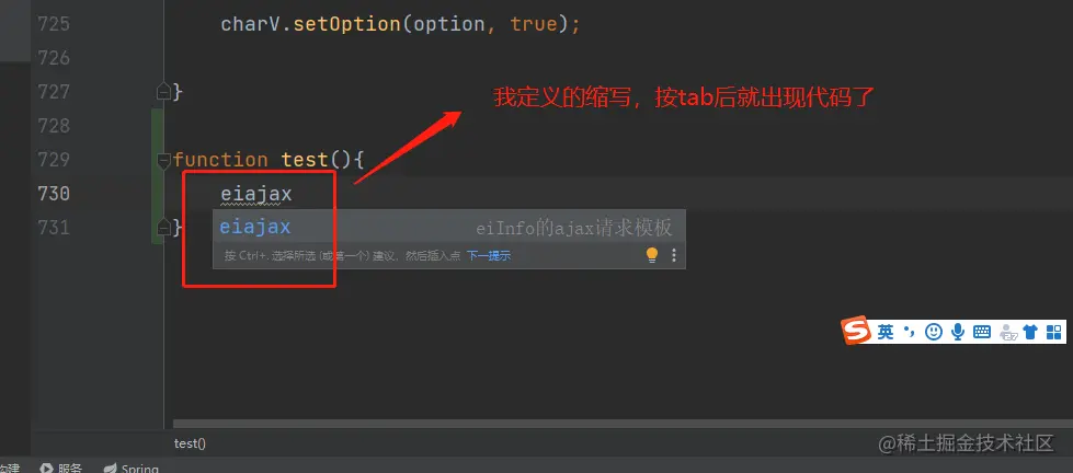 abbreviation:缩写,输入缩写快速生成代码。