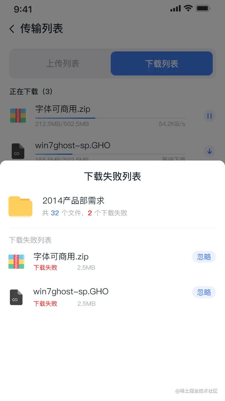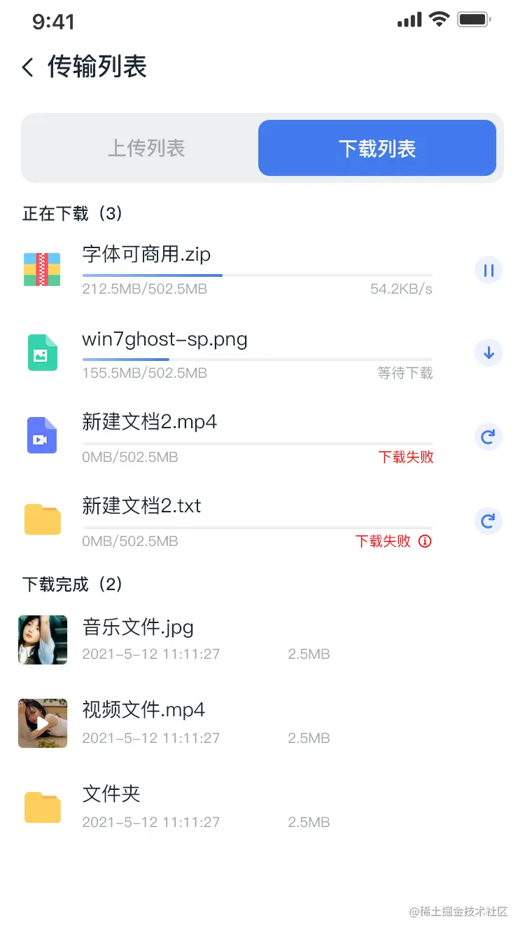 勾选需要下载的文件或文件夹,点击下载,则在传输列表会有下载任务,进入传输列表,即可查看每个文件当前下载情况。