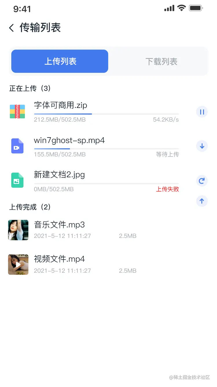 文件夹的目录下,点击右上角的上传图标,即可上传文件。上传文件需要一定的等待时间,选择文件后,可在传输列表查看正在上传的任务,上传完毕后,在文件夹列表可查看对应的文件,并对其操作。