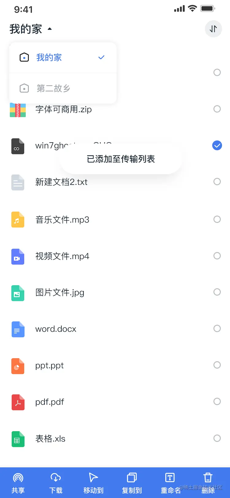 可选择一个或多个文件/文件夹,点击移动,把对应内容移动到其他目录下。