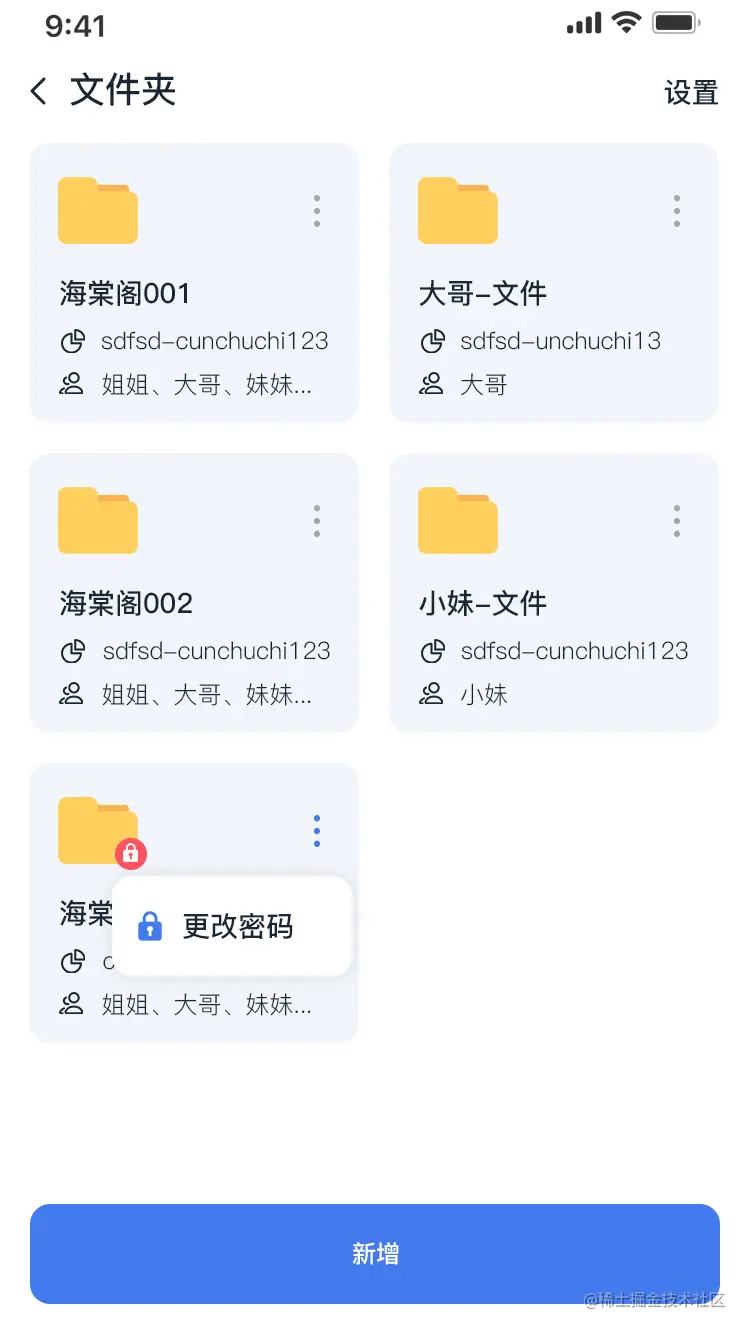 加密的文件夹带有锁的图标,且可点击右上角的三个点,进入修改密码页面。