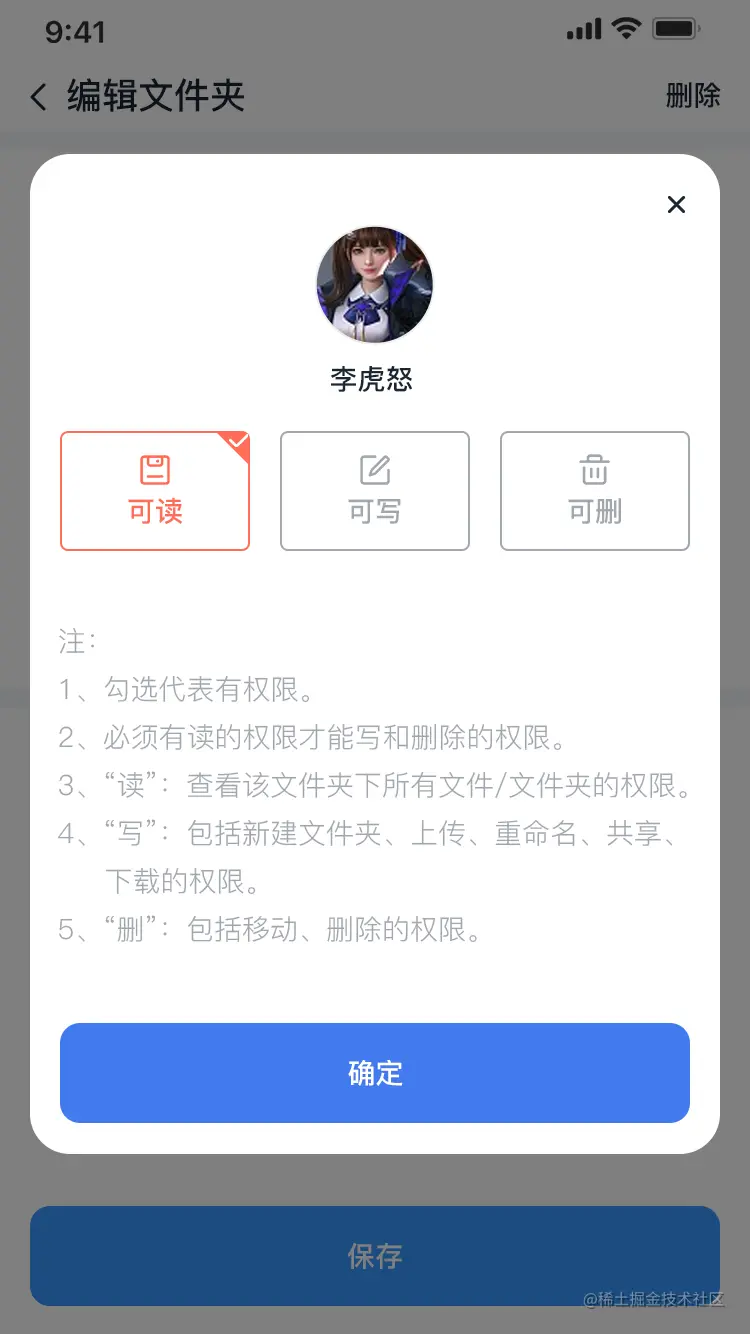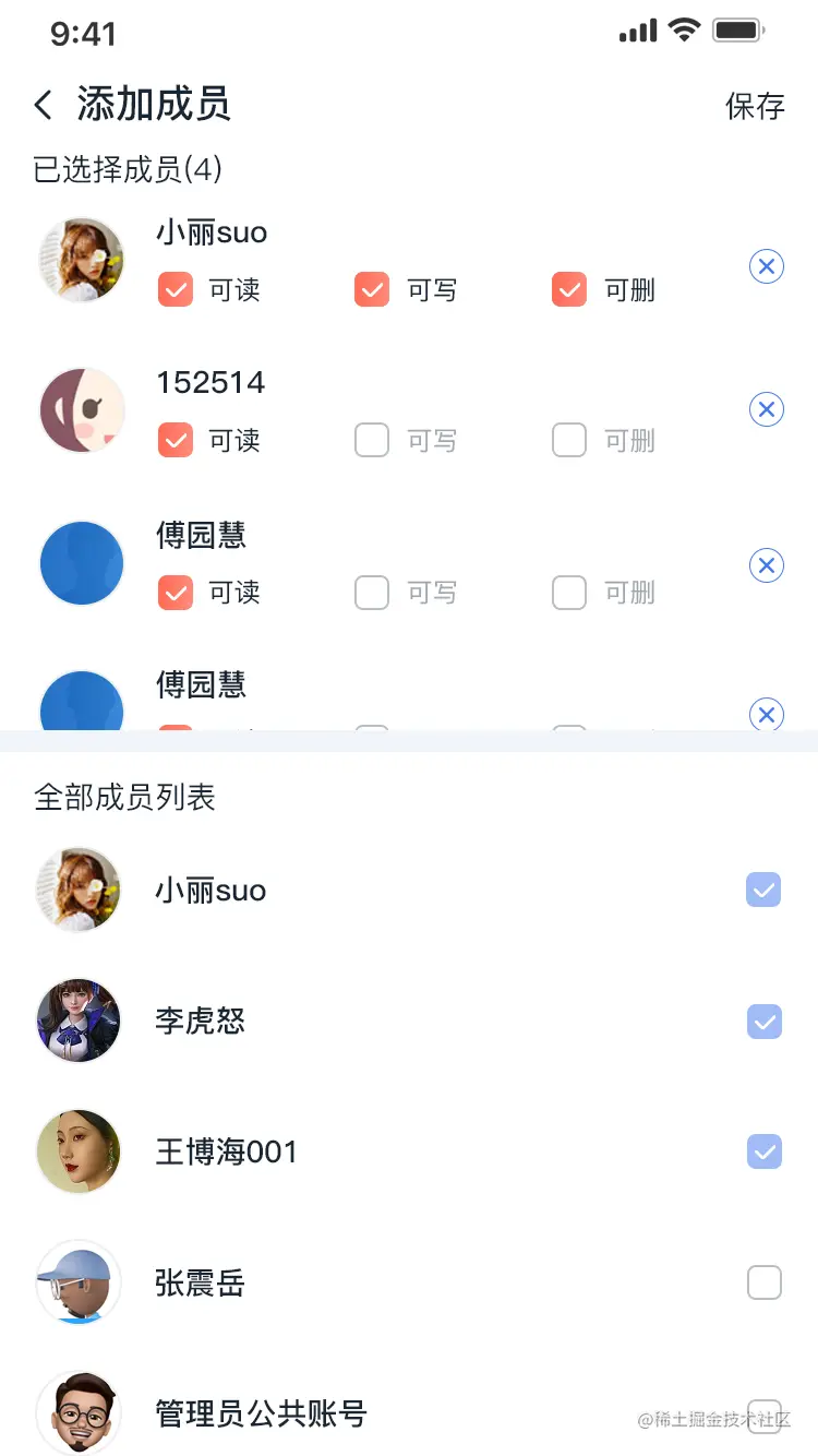 - 选择文件夹的用户及对应文件夹的权限,私人文件夹只能选择一位成员,共享文件夹可选择一个或以上测成员。如下图所示:
