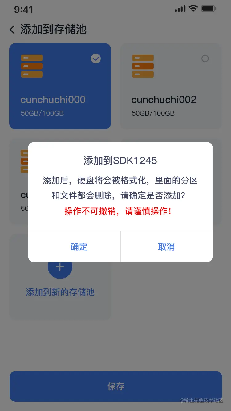 可把硬盘添加到原有的存储池,勾选对应存储池,点击【保存】即可。