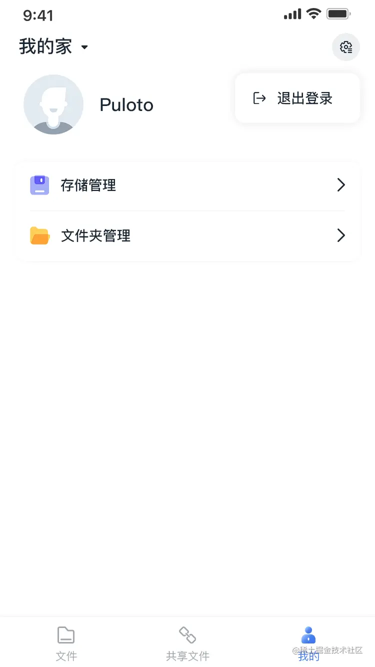 在“我的”页面有两个菜单入口,分别是【存储管理】和【文件夹管理】。