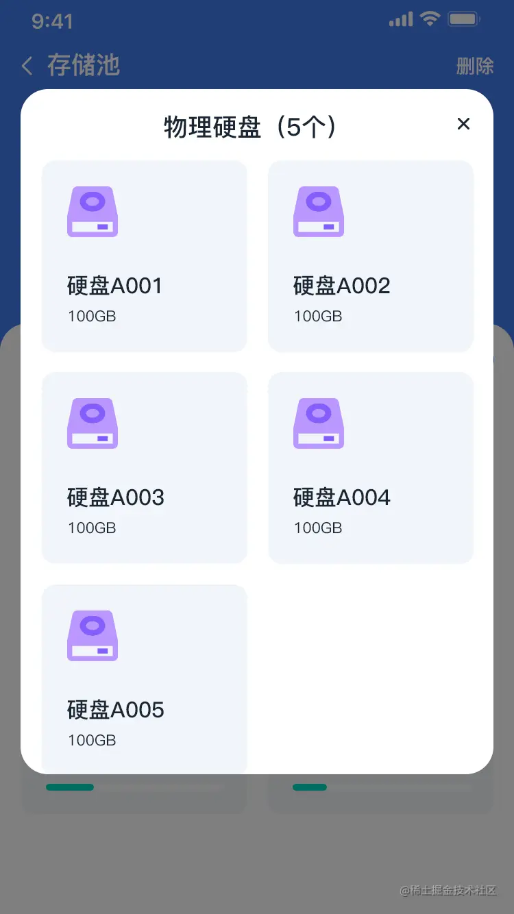 - 点击物理硬盘,可查看该存储池添加的所有物理硬盘。
