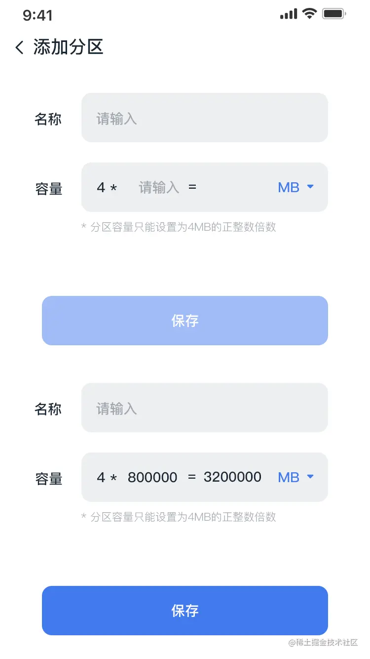 容量单位如果选择MB,则需要是4的整数倍;