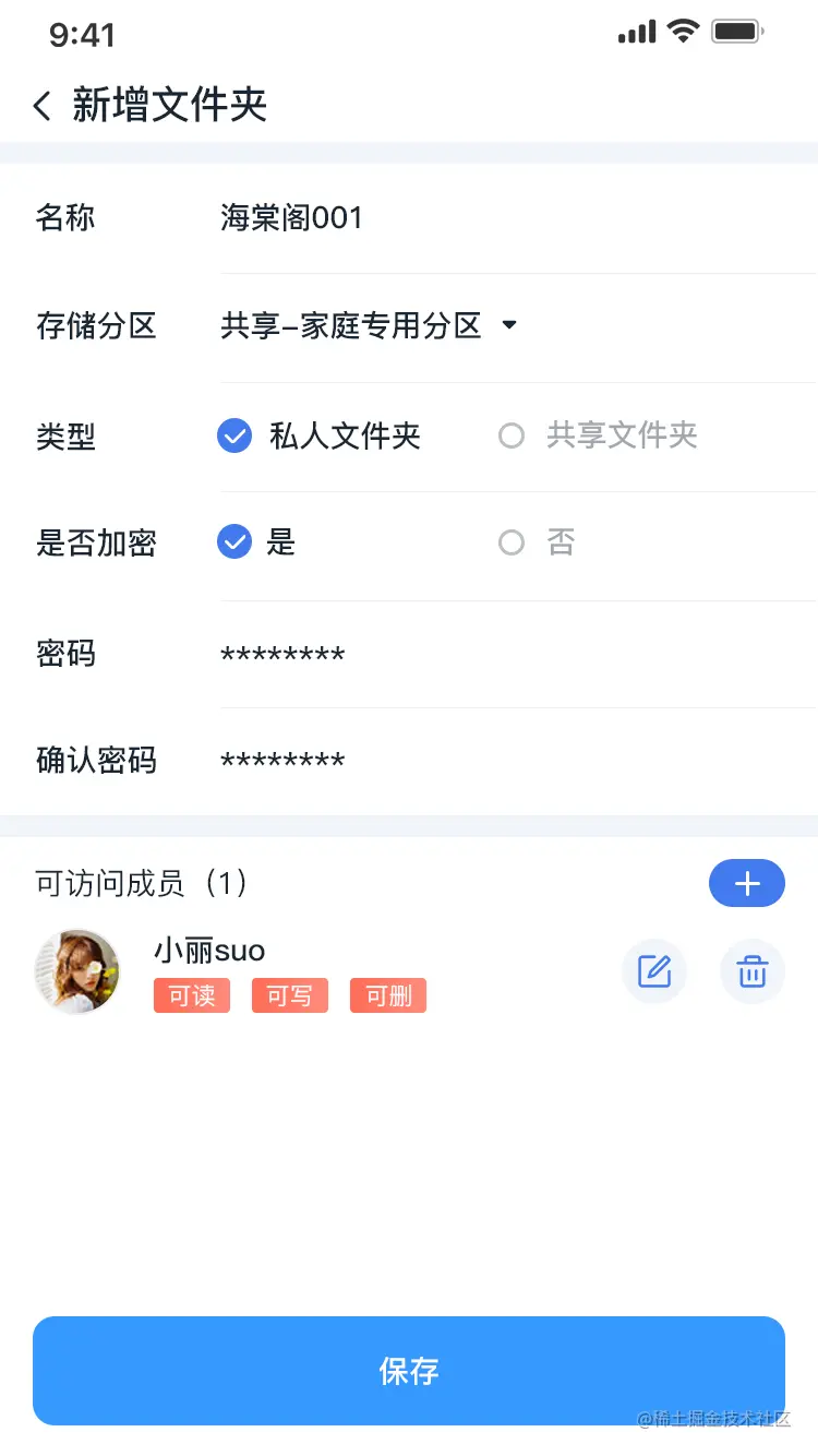 - 如果文件夹是私人文件夹,则可自由设置是否加密及对应的密码,共享文件夹暂不支持设置为加密。