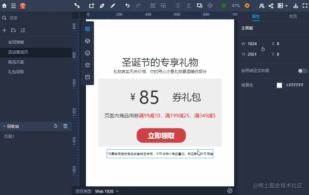 而有些时候咱们一个活动的具体内容,是没有办法全部表达在一个页面上的。所以大家可以在左侧新建页面,并在对应的位置提供跳转交互,这样提交的方案,才是最完善,最无懈可击的~😉(一个油腻的wink)