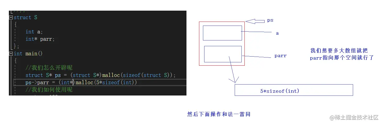 ps->parr = (int*)malloc(5 * sizeof(int));