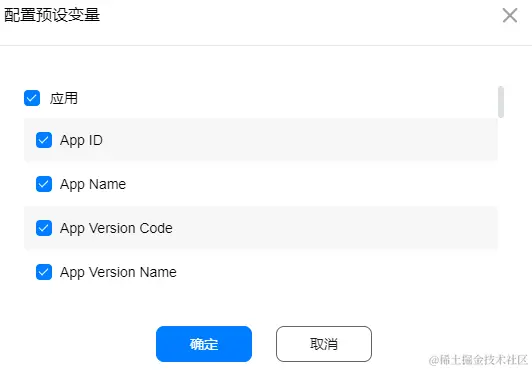 第 8 步:在“变量”页面,点击右侧的“配置”/“新建“按钮。为事件和标签设置预设/自定义变量。