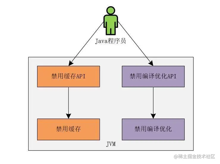 何时禁用和不禁用缓存和编译优化,可以根据编写高并发程序的开发人员的要求来合理的确定(这里需要重点理解)。所以,可以这么说,为了解决可见性和有序性问题,Java只需要提供给Java程序员按照需要禁用缓存和编译优化的方法即可。