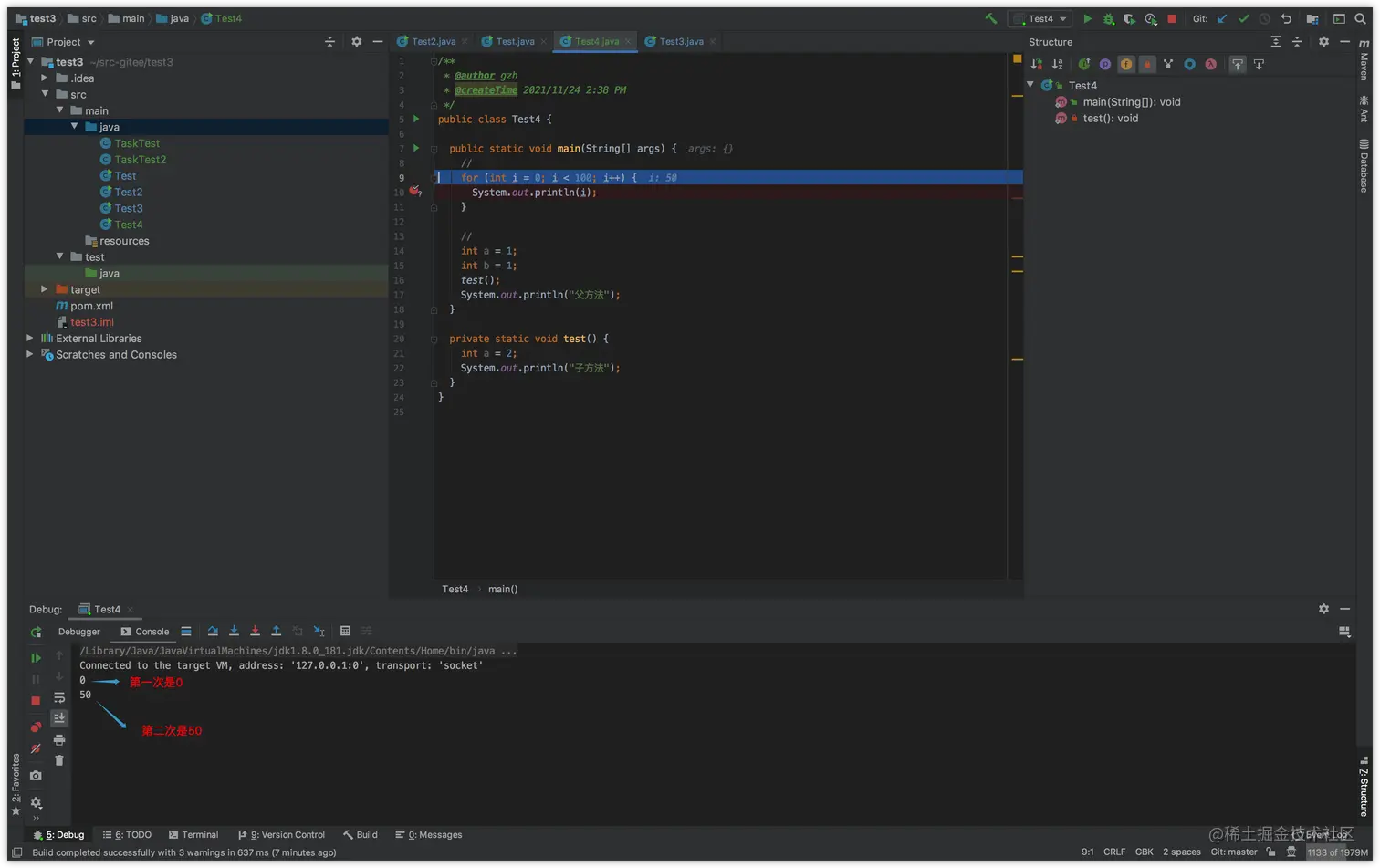 然后,继续执行下一次循环,就可以看到循环变量的值现在是50。