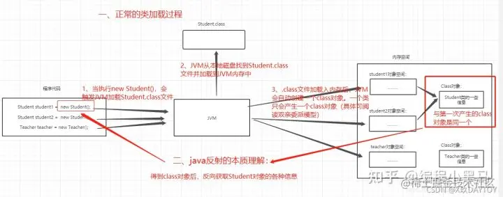 下图是类的正常加载过程、反射原理与class对象: