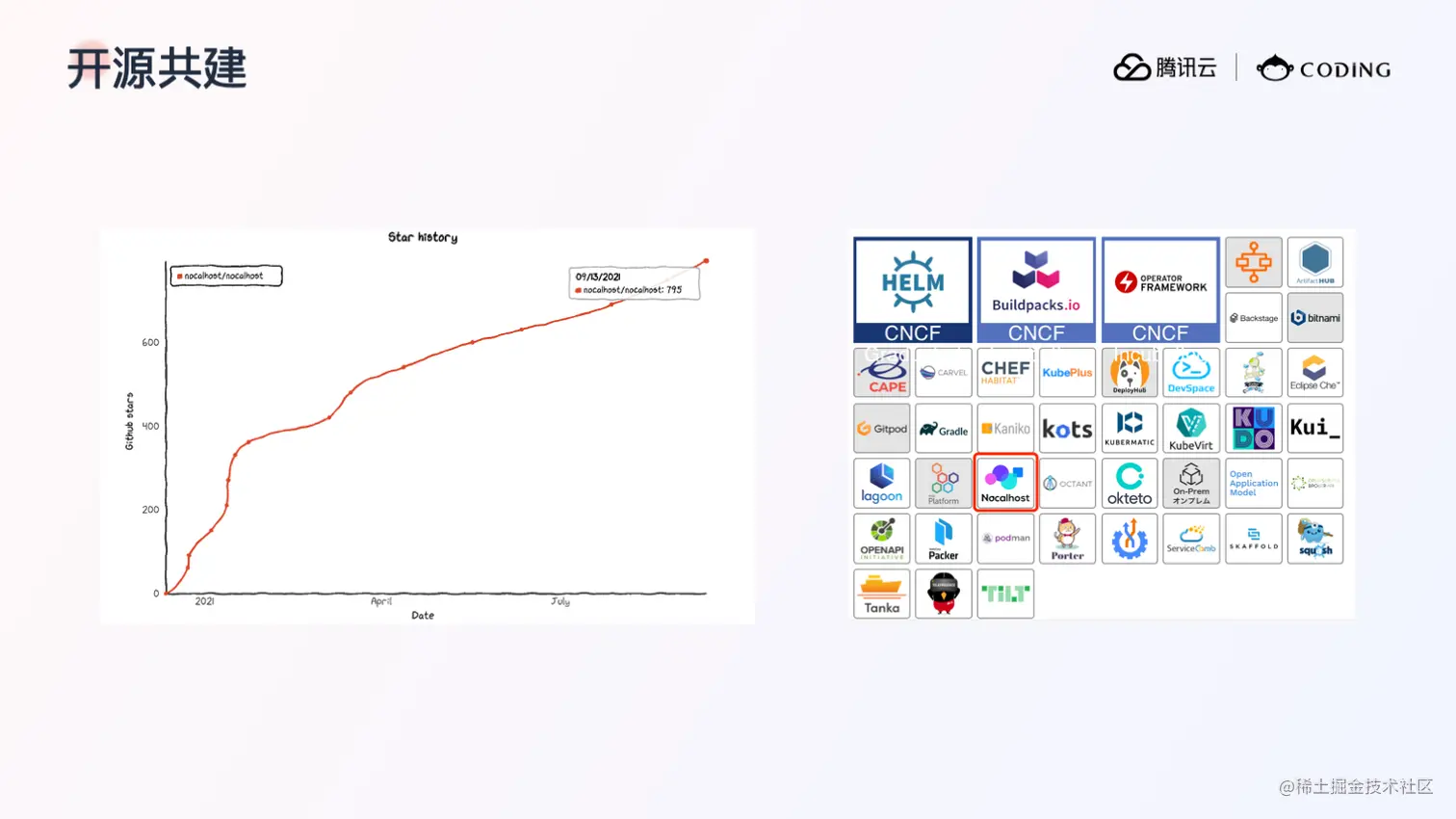 通过演示相信大家已经理解 Nocalhost 带来的全新云原生的开发体验。最后一部分我将与大家分享开源共建和展望。Nocalhost 目前是一个完全开源的项目,代码托管在 GitHub 上,已经有 900+ star,同时也是 CNCF Landscape 项目,并且被收录在云原生全景图当中,也欢迎大家关注和贡献。