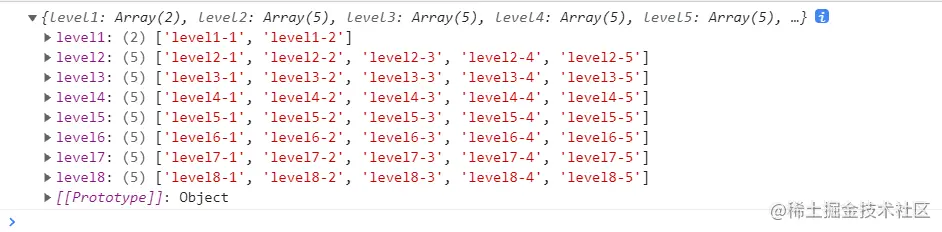 点击“获取选中的节点”按钮,控制台输出最终重组后的数据,如图所示: