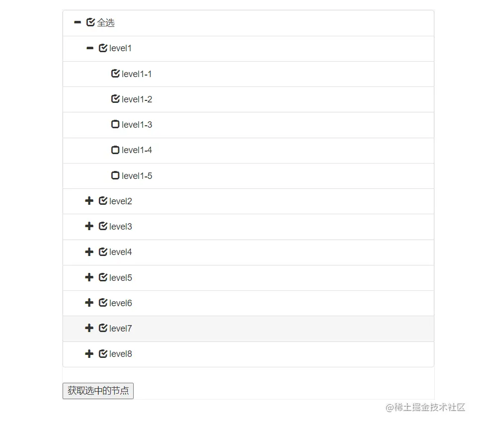 <button class="selectedNodes">获取选中的节点</button>