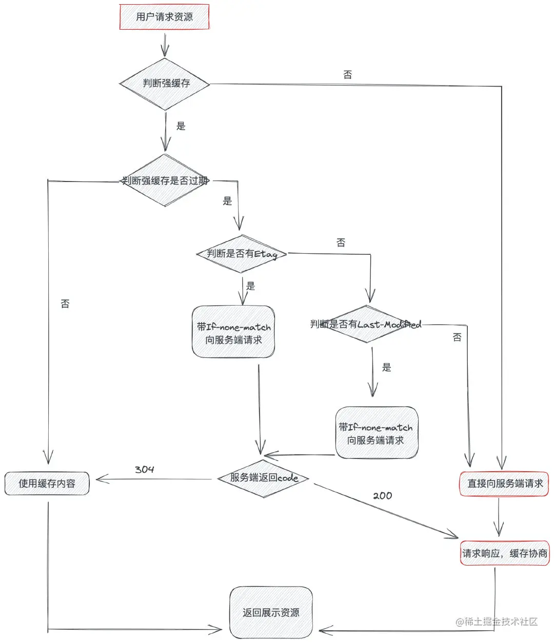 Expires(Http1.0)或Cache-Control(http1.1)字段来判断 - 协商缓存:协商缓存是当强缓存不生效的时,浏览器携带缓存标识想服务端发送请求,由服务端根据