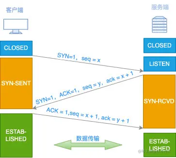 ESTABLISHED状态。服务器收到 ACK 报文之后,也处于ESTABLISHED状态。此时,双方已经建立起了连接。 -