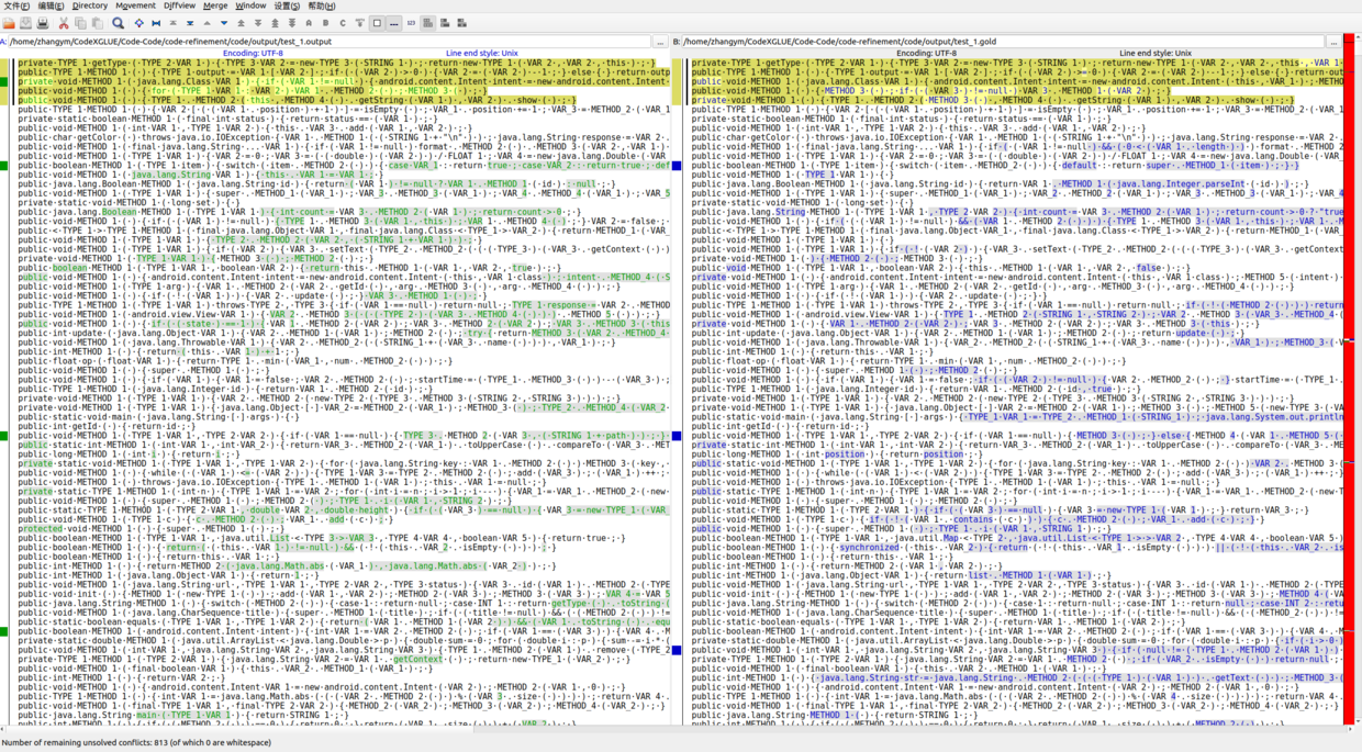 如何评价我们生成的代码质量好不好呢?我们可以通过比较我们生成的output/test_1.output和output/test_1.gold进行比较,可以使用下面的evaluator.py脚本: